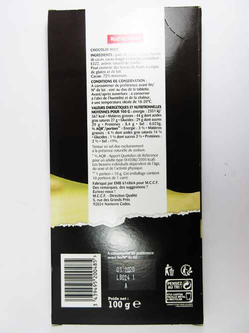 Chocolat Noir Dégustation 72%T Rochambeau 100g