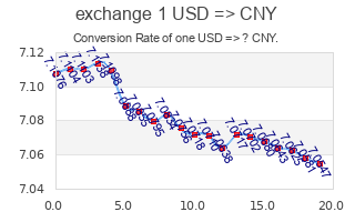 这些转换率是由欧洲中央银行 (ECB)每天一次提供的, 它们只能在当天作为参考,不能用于货币交换。 请同样咨询交换率变化历史, 此货币的 当天交换率, 或者交换率变化图 USD => CNY。 主要世界外汇交叉外汇兑换表 给予一个简短的描绘, 在此的世界货币表也值得您的一阅。